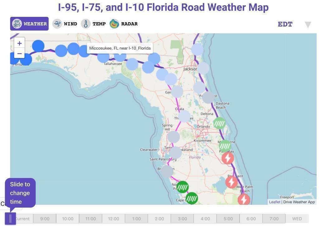 Driving Weather Map Florida Road Conditions Drive Weather: Minnesota isn’t just large — the north-south distance is the same as driving from can also check the weather, the real-time flooding risk and fire danger at the places they intend to visit. The . Emergency medical services were dispatched around 8:16 a.m. to College Town and La Riviera drives. It was unclear what caused the crash or if anyone was injured. See our live traffic map for updates. .